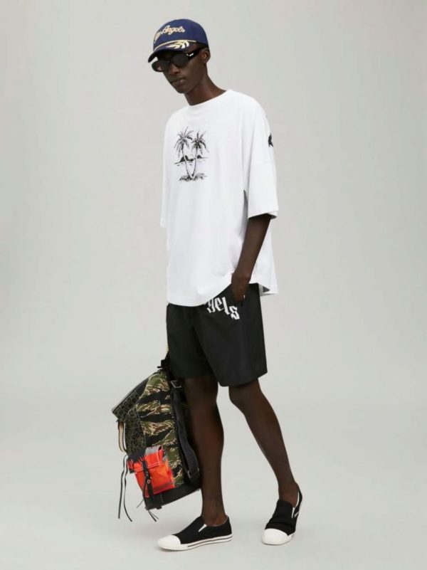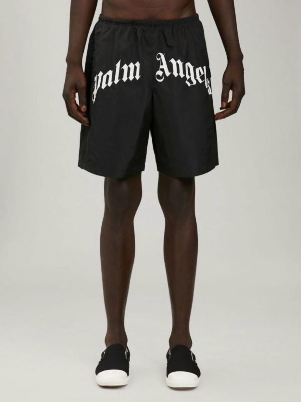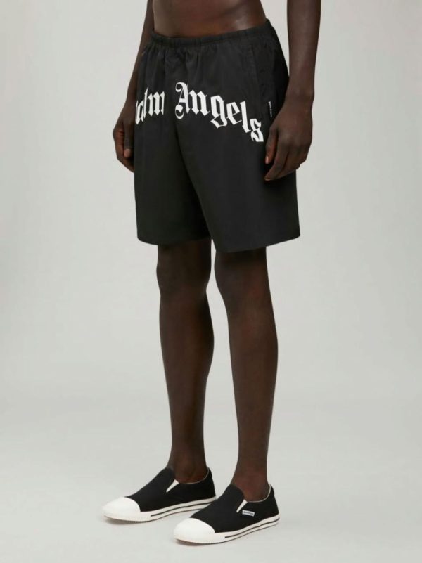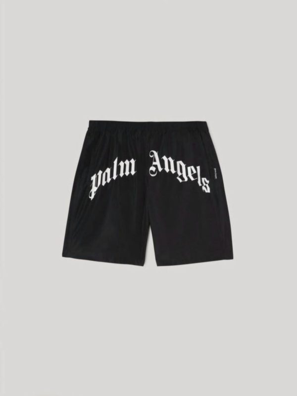 CURVED LOGO SWIMMING SHORTS PALM ANGELS MENS BLACK WHITE