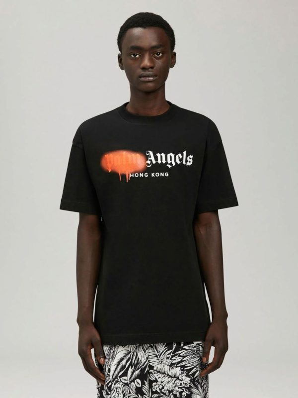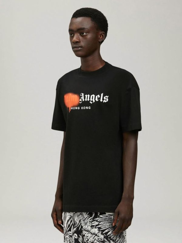 Men T-Shirts | Palm Angels Hong Kong Sprayed T-Shirt Black Orange