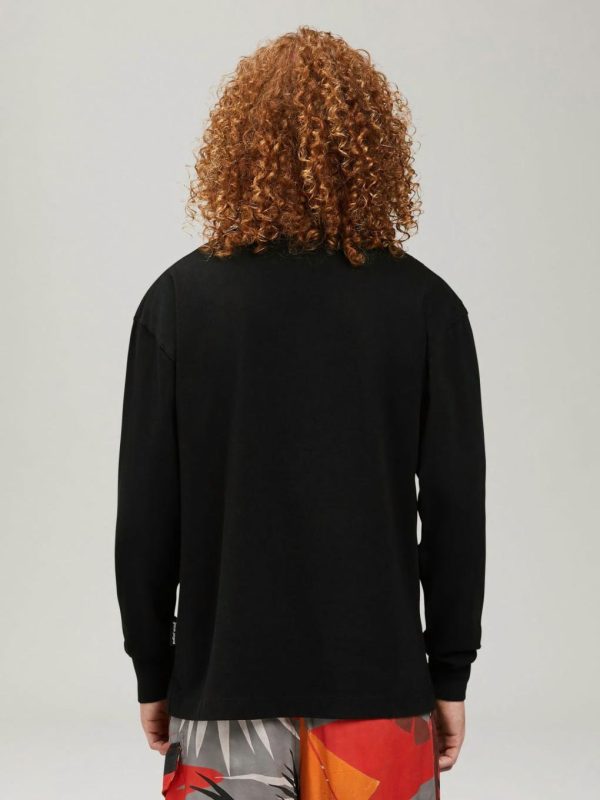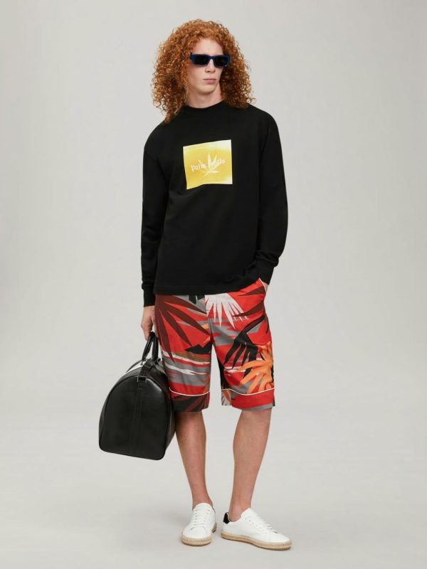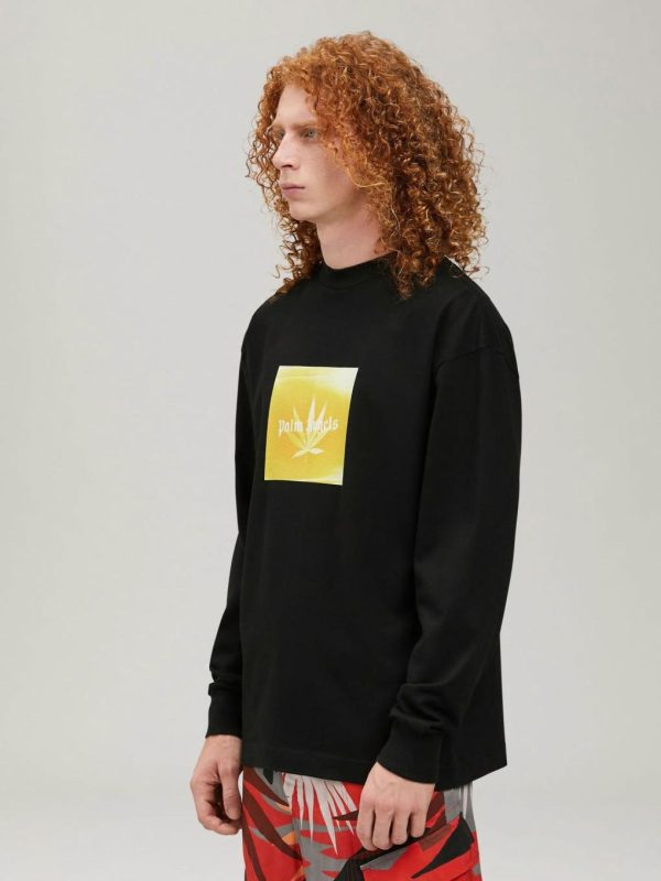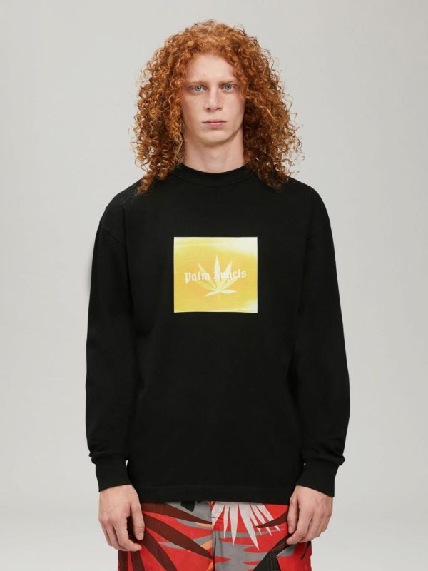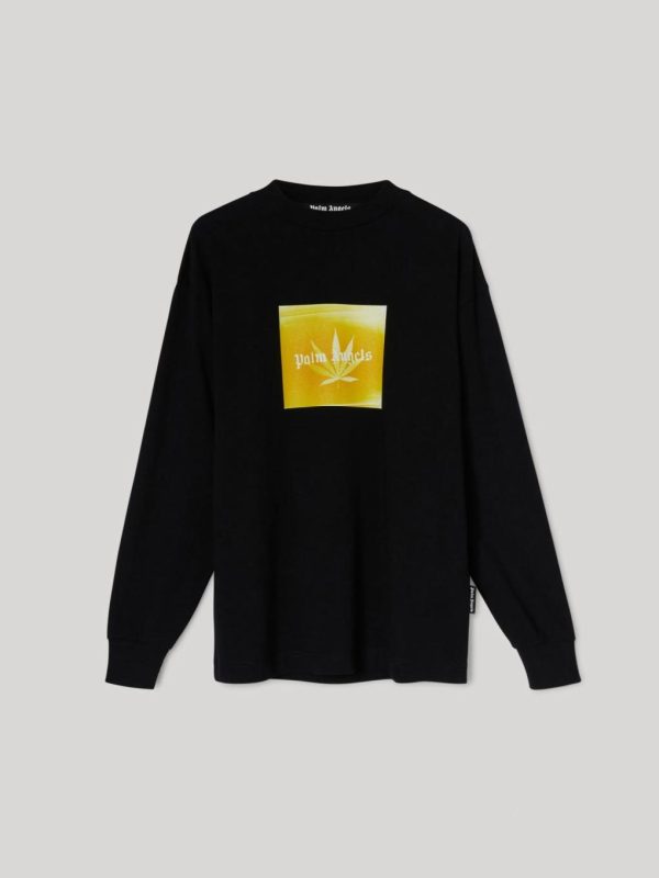 LONG SLEEVES T-SHIRT IN BLACK WITH LEAF GRAPHIC PRINTED AT FRONT IN YELLOW. “PALM ANGELS” LOGO PRINTED IN WHITE AT FRONT. CREWNECK COLLAR.