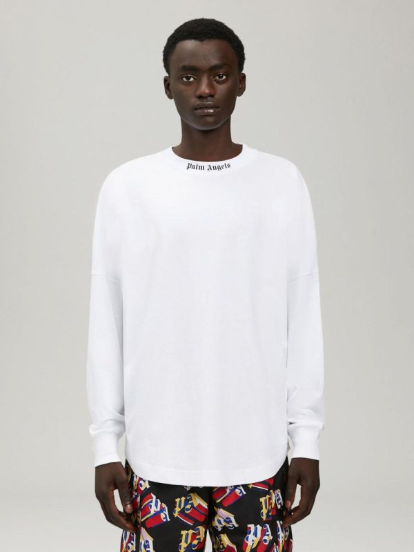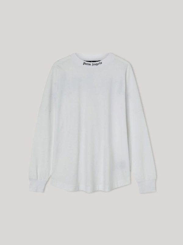 LONG SLEEVES LOGO T-SHIRT IN WHITE. BLACK LOGO PRINTED AT NECK AND TO THE REAR. CREWNECK COLLAR.
