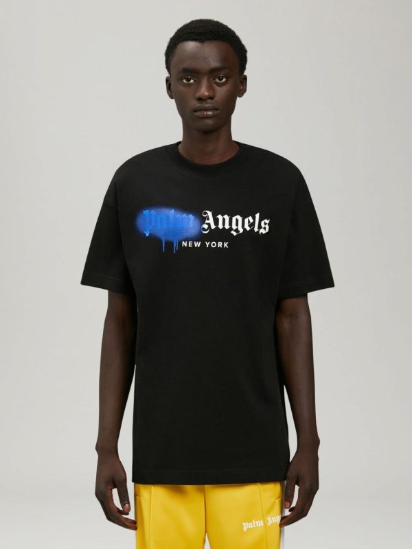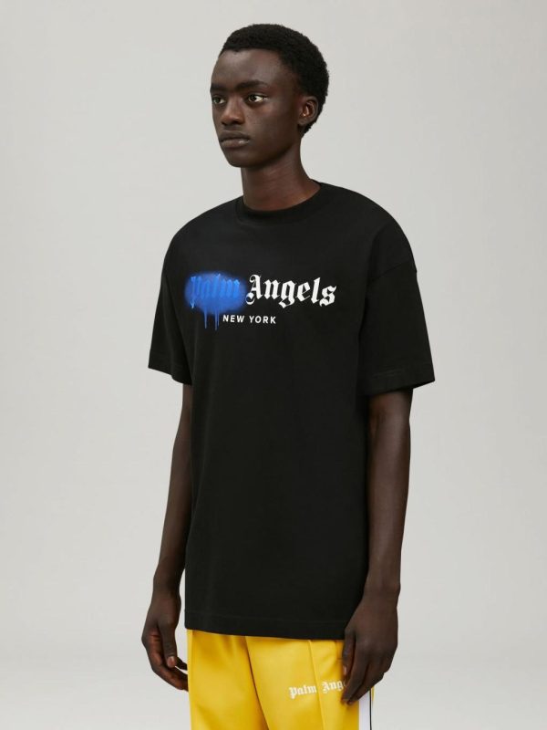 SHORT SLEEVES T-SHIRT IN BLACK WITH BLUE SPRAYED PRINT AT FRONT. CREW NECK. LOGO AND “NEW YORK” PRINTED IN WHITE AT FRONT. STRAIGHT HEM.