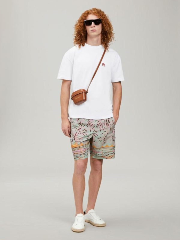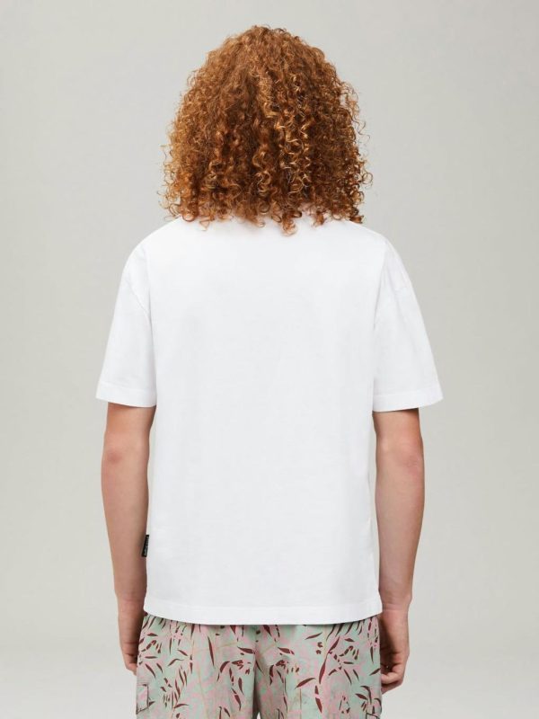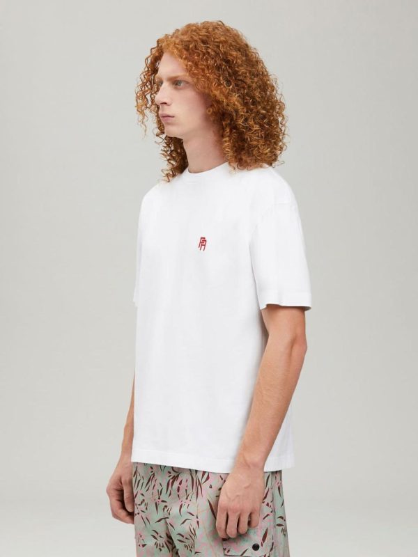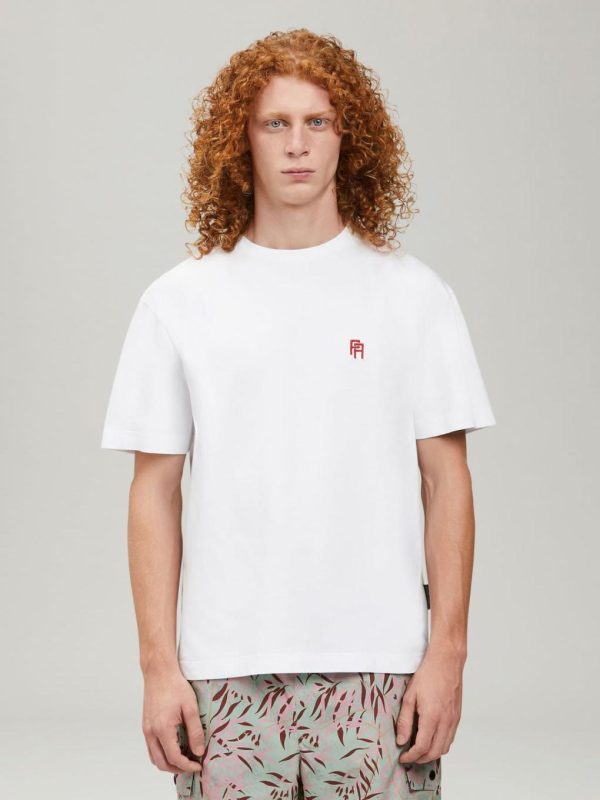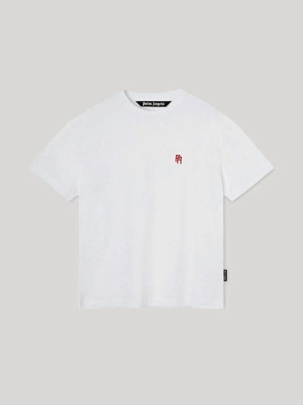 SHORT SLEEVES T-SHIRT IN WHITE WITH “PALM ANGELS” LOGO EMBROIDERED IN RED AT FRONT. CREWNECK COLLAR.