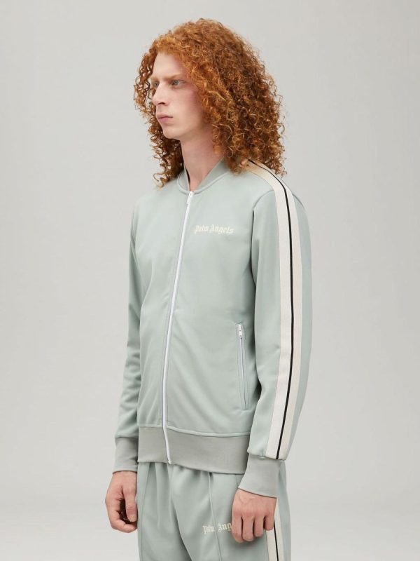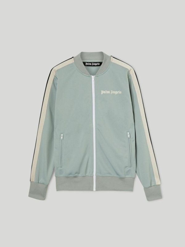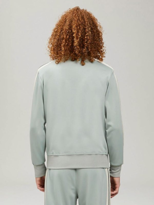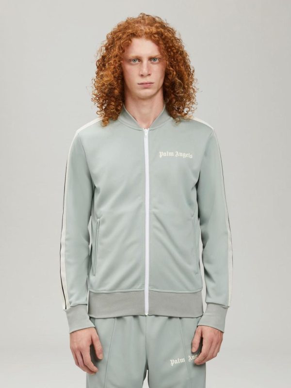 LONG SLEEVES TRACK JACKET IN GREY. RIB KNIT CUFFS, COLLAR AND HEM. ZIP CLOSURE. TWO ZIP POCKETS. WHITE STRIPES AT SLEEVES.