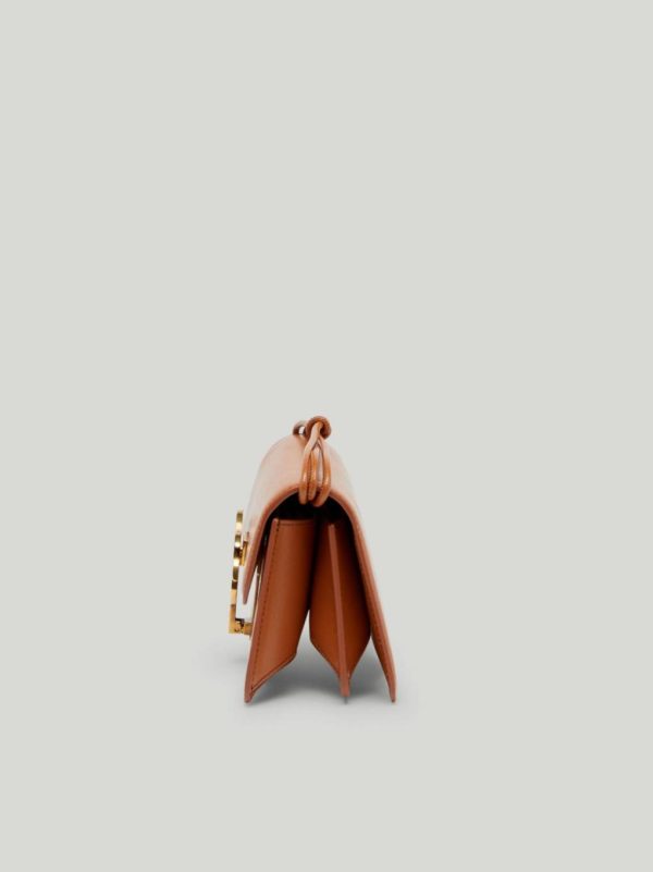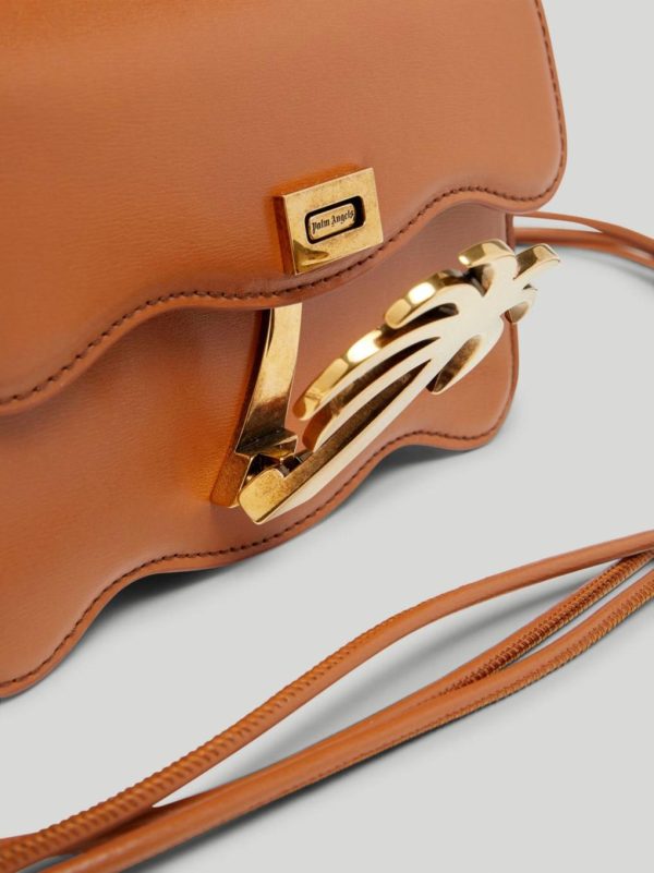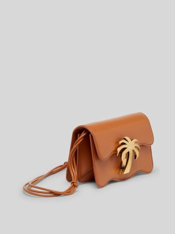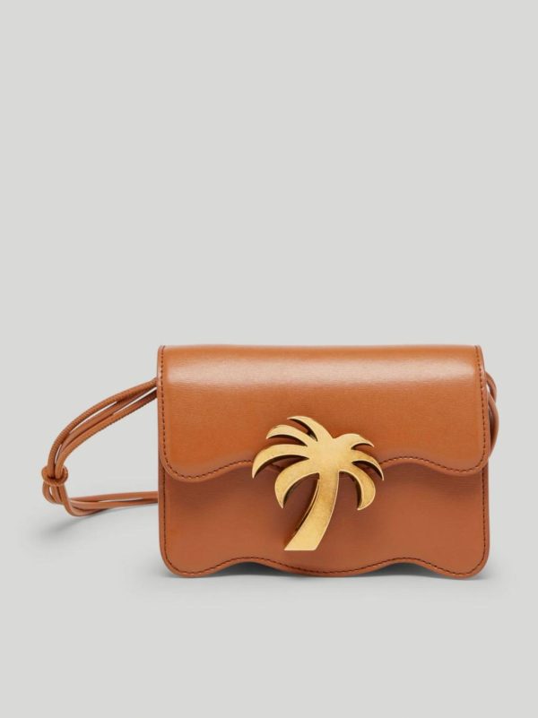 Made from calfskin leather, with matching handmade profiles, the Palm Beach bag is offered as a crossbody bag in the small version. The iconic palm tree silhouette, in shiny gold and faceted 3D metal, acts as a closure, stating the perfect union between the essence of freedom of a life by the beach and with a metropolitan attitude.
