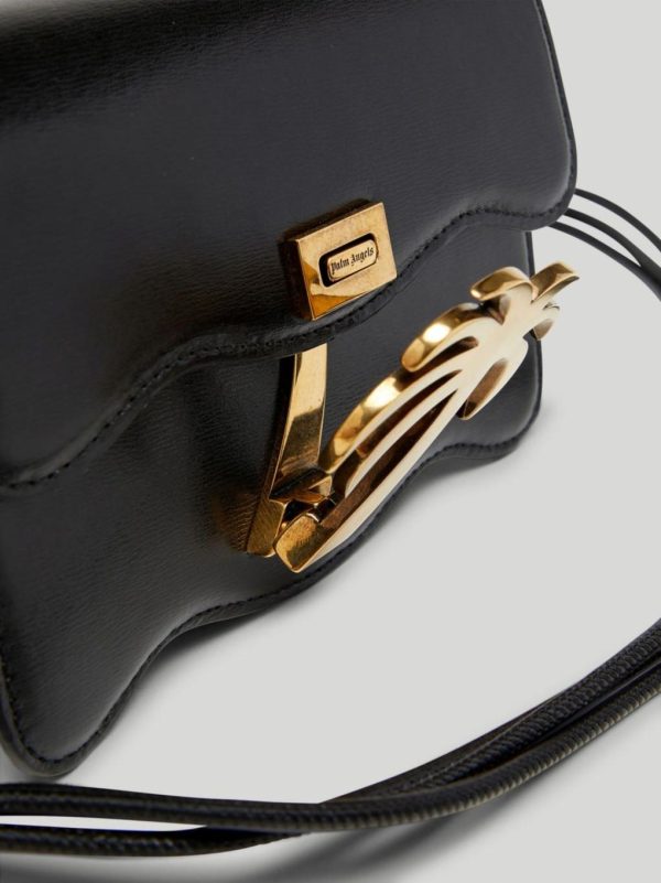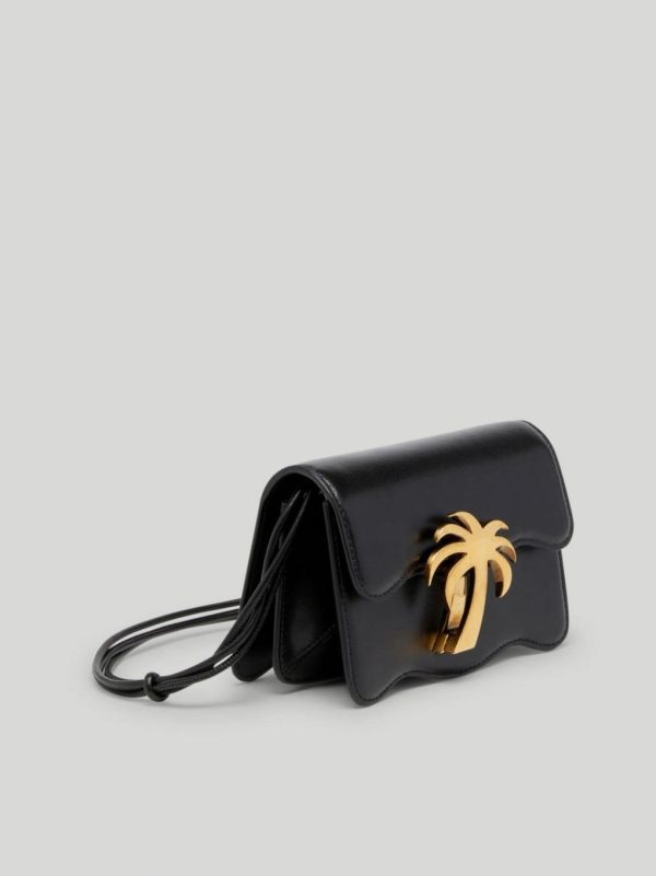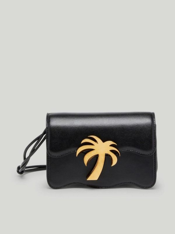 Made from calfskin leather, with matching handmade profiles, the Palm Beach bag is offered as a crossbody bag in the small version. The iconic palm tree silhouette, in shiny gold and faceted 3D metal, acts as a closure, stating the perfect union between the essence of freedom of a life by the beach and with a metropolitan attitude.
