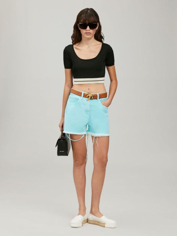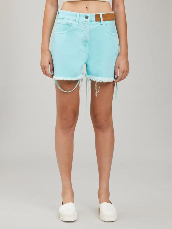 Women Shorts | Palm Angels Denim Shorts Fluo Green Brown