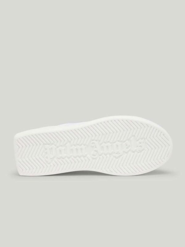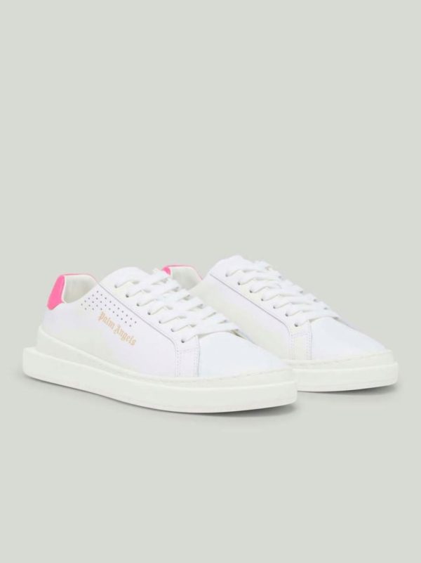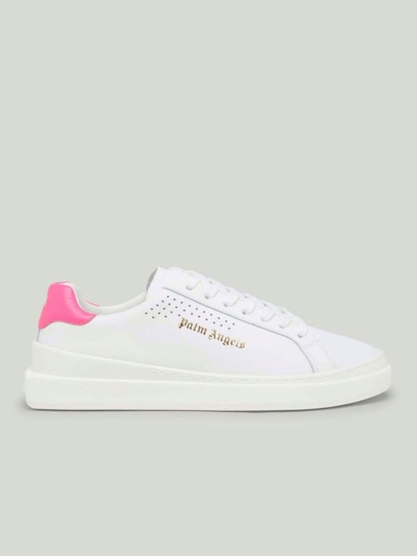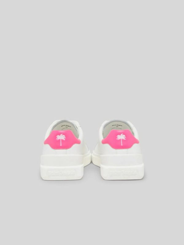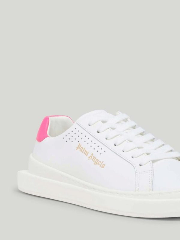 LOW-TOP PLATFORM SNEAKERS IN WHITE WITH FUCHSIA DETAIL AT BACK. “PALM ANGELS” LOGO PRINTED AT SIDES. WHITE SQUARE RUBBER SOLE. WHITE LACE-UP CLOSURE.