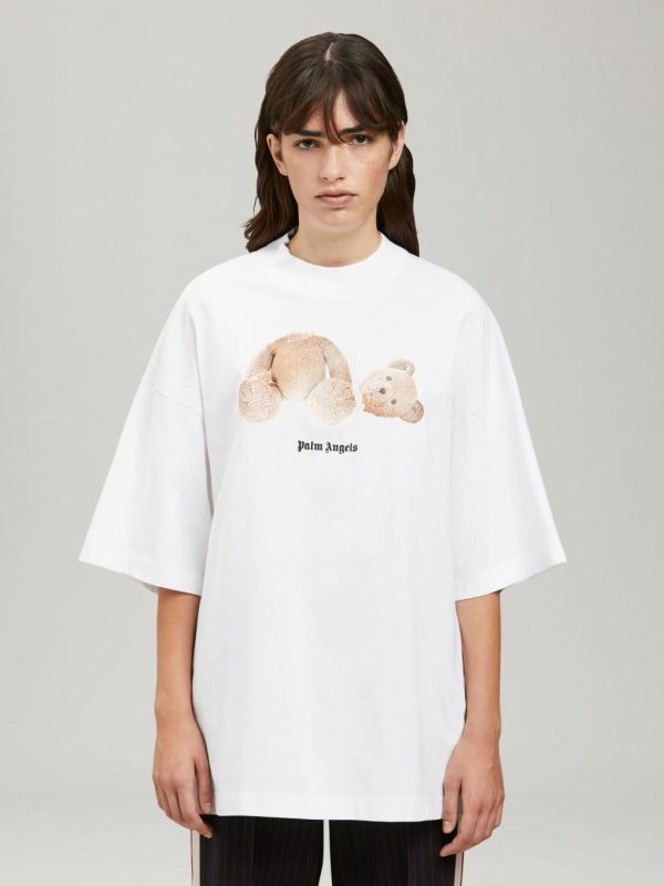 Women Sweatshirts, T-Shirts & Tops | Palm Angels Bear Loose T-Shirt White Brown
