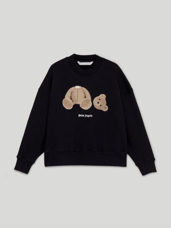 LONG SLEEVES SWEATSHIRT IN BLACK. BEAR EMBROIDERED ON FRONT. “PALM ANGELS” LOGO PRINTED IN WHITE AT FRONT.