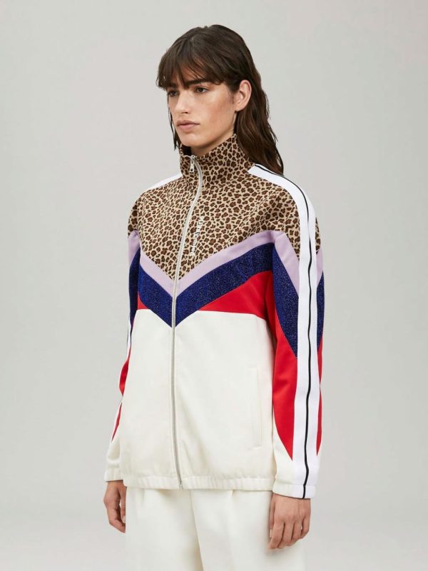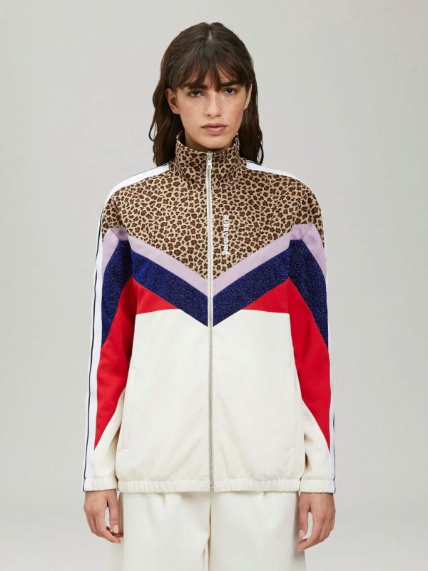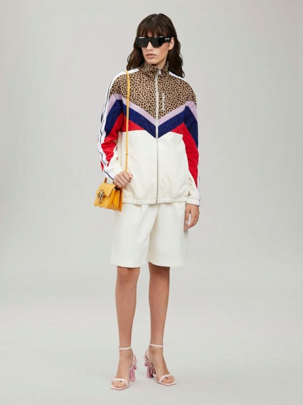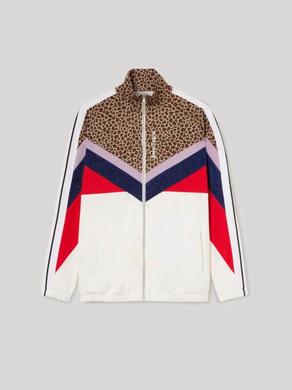 LONG SLEEVES TRACK JACKET IN WHITE FEATURING DIFFERENT COLORBLOCK PRINT DETAILS. RIB KNIT CUFFS, COLLAR AND HEM. ZIP CLOSURE. TWO STYLING POCKETS. WHITE STRIPES AT SLEEVES. “PALM ANGELS” LOGO PRINTED IN WHITE AT FRONT.
